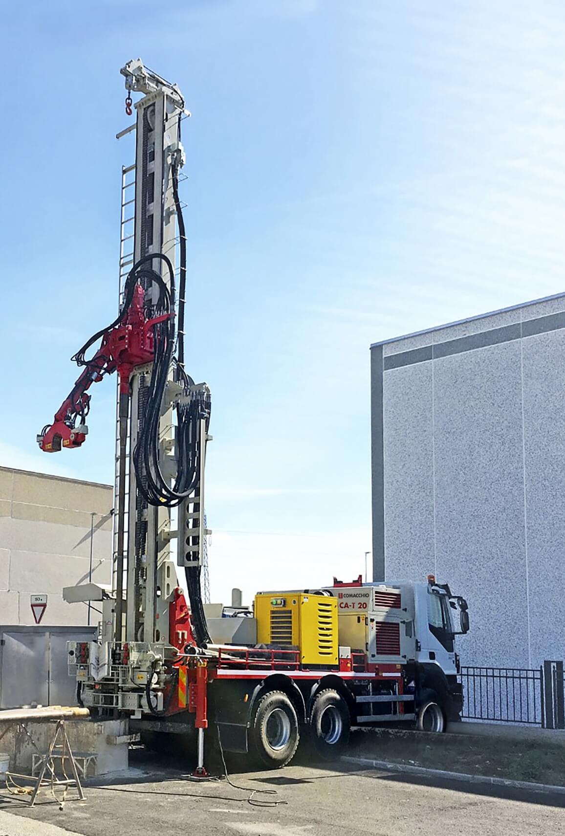 Perforatrici idrauliche installate su camion, in grado di sviluppare fino a 50 tonnellate di tiro e di supportare tutti i sistemi di perforazione a testa singola, particolarmente indicati per la realizzazione di pozzi d'acqua in condizioni ambientali difficili, su aree remote e/o terreni accidentati.
