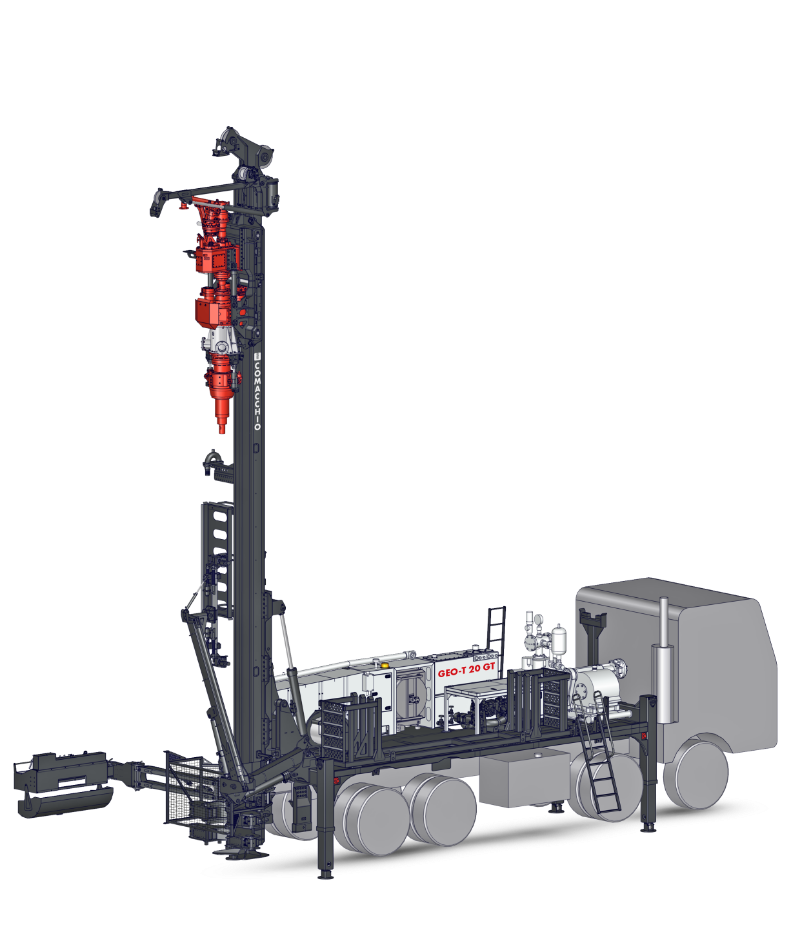 Introdotti inizialmente nel settore della geotermia per le perforazioni finalizzate all’installazione di scambiatori di calore, questi sistemi trovano sempre maggiore applicazione anche nel campo dei pozzi acquiferi. L’uso dei sistemi a doppia testa impedisce infatti che le falde acquifere poste a profondità differenti entrino in comunicazione e vengano contaminate, in linea con quanto richiesto dalle attuali normative che mirano a una maggiore tutela delle risorse idriche. La gamma Comacchio comprende un ventaglio di ben 7 modelli di perforatrici idrauliche cingolate e autocarrate, con capacità di tiro dalle 10 alle 30 t, appositamente studiate per questo tipo di applicazioni. Lo sviluppo di sistemi a doppia testa è stato accompagnato negli anni da una sempre maggiore automazione nella movimentazione delle attrezzature di perforazione, nonché dall’introduzione di soluzioni che facilitano il recupero dei tubi di rivestimento e la gestione dei detriti risultanti dalla perforazione. Lo studio dettagliato dell’allestimento di ogni singolo modello ha permesso inoltre di ottimizzare i processi per garantire la massima efficacia operativa ed economicità dei costi, creando un ambiente di lavoro sicuro e pulito.